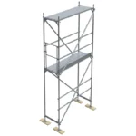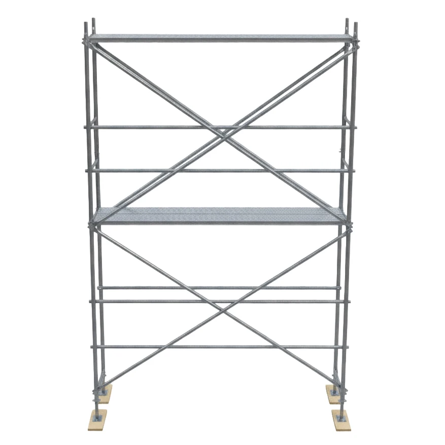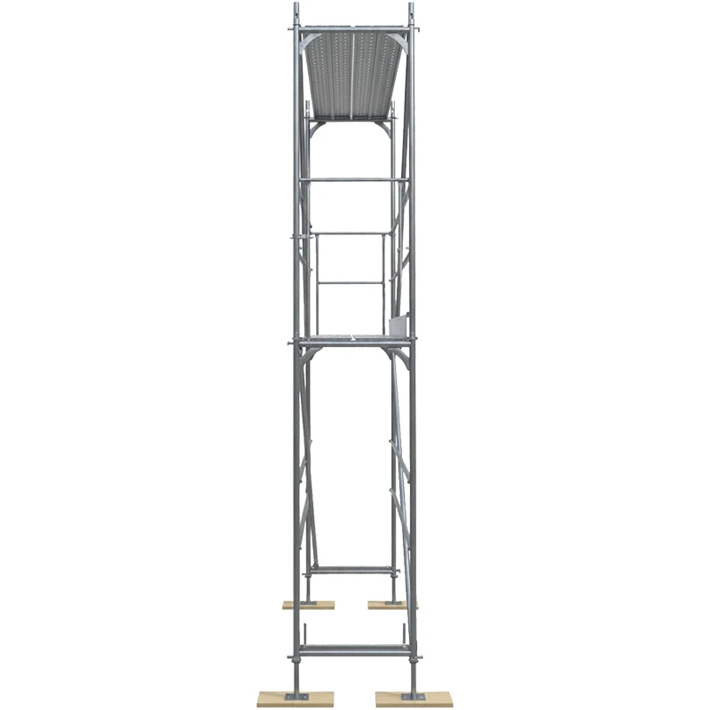 Estrutura robusta, com escadas largas internas e múltiplos patamares. Certificação EN 12810