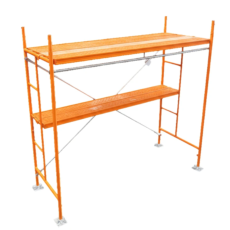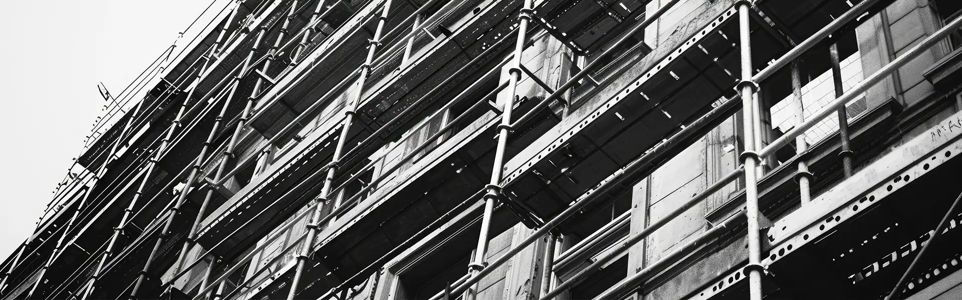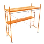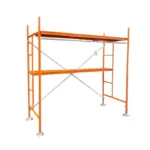 Também conhecido como tubular de fachada. Estrutura de quadros fixos, montada em fachadas, com pranchas e travamentos diagonais